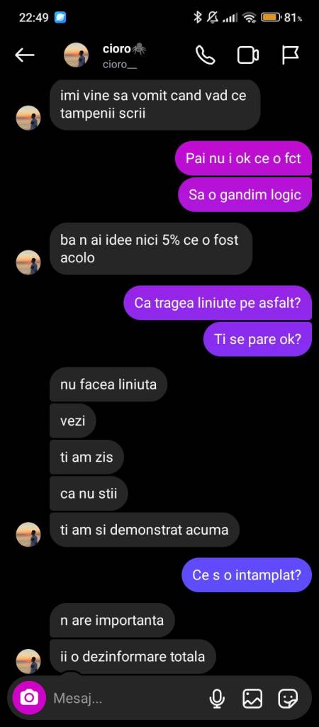 Da, Cioro! Și acum haide să facem scandal atât în privat cât și în public din cauza faptului că tu susții că eu nu am idee nici 5% despre cazul lui Gheorghieș. Ei bine, nu știu cum să îți spun , dar am idee. A ucis o femeie nevinovată care nu merita ca viața ei să aibă un sfârșit atât de dureros.